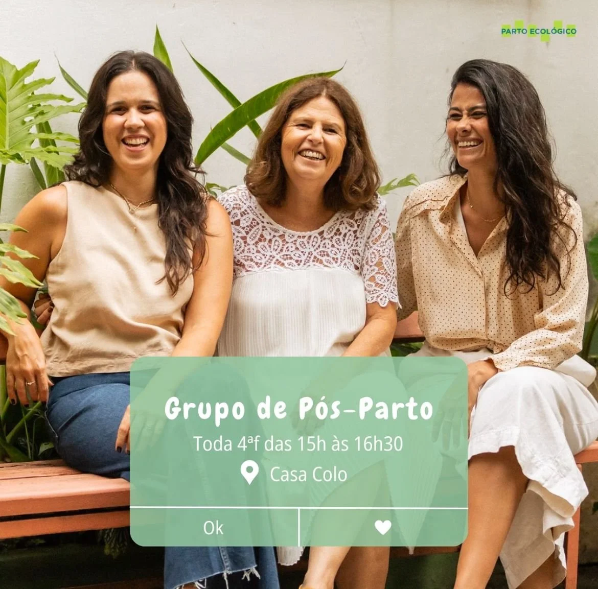 A mediação é realizada por Heloisa Lessa, Fernanda Galvão e Fernanda Senna. Somos mães, Heloisa também avó, e já acompanhamos o pós-parto de uma forma ou de outra há alguns anos.